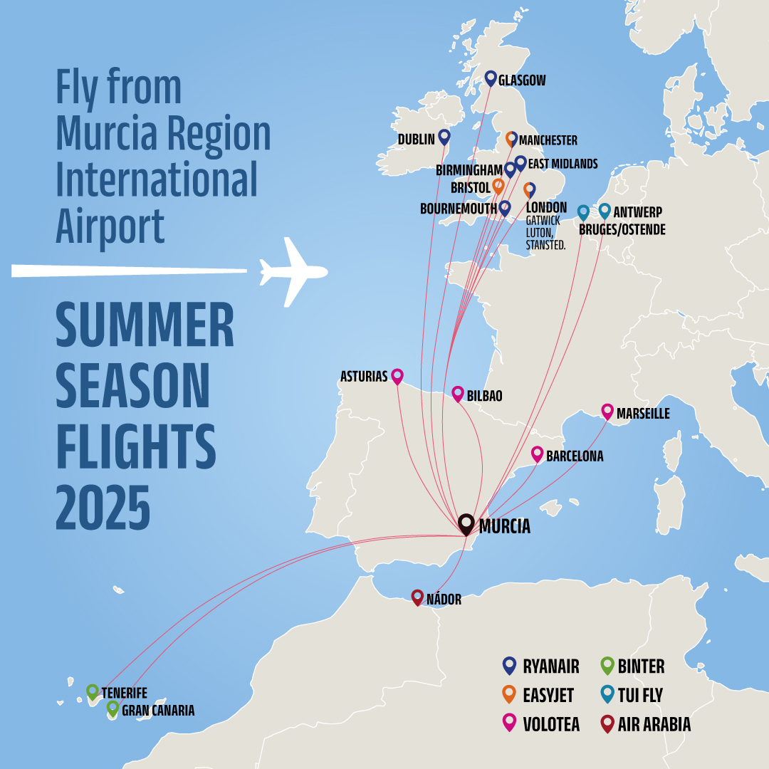 Connecting the Region of Murcia with the world, the airport offers an extensive network of national and international destinations. From exciting Spanish cities like Barcelona and Madrid to exotic global spots like London and Dublin, enjoy direct flights and smooth connections that will take you to fascinating places. Welcome to a world of possibilities!